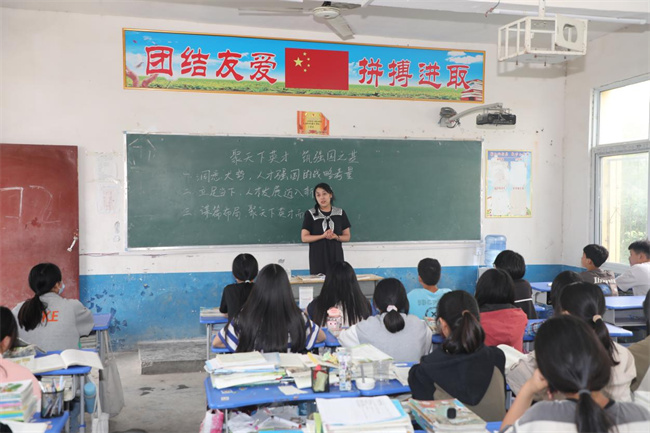 在東和店鎮(zhèn)初級(jí)中學(xué),藝術(shù)教學(xué)部主任陳錦杰講授了“高雅音樂進(jìn)課堂——古典音樂欣賞”藝術(shù)課,帶領(lǐng)同學(xué)們一起欣賞古典音樂,走進(jìn)音樂藝術(shù),提升審美情趣。思想政治理論教學(xué)部教師劉妍以《聚天下英才 筑強(qiáng)國之基》為題進(jìn)行了理論宣講,為同學(xué)們講解了國家加快建設(shè)教育強(qiáng)國、科技強(qiáng)國、人才強(qiáng)國有關(guān)內(nèi)容,鼓勵(lì)同學(xué)們要懷抱夢想,立志成才。