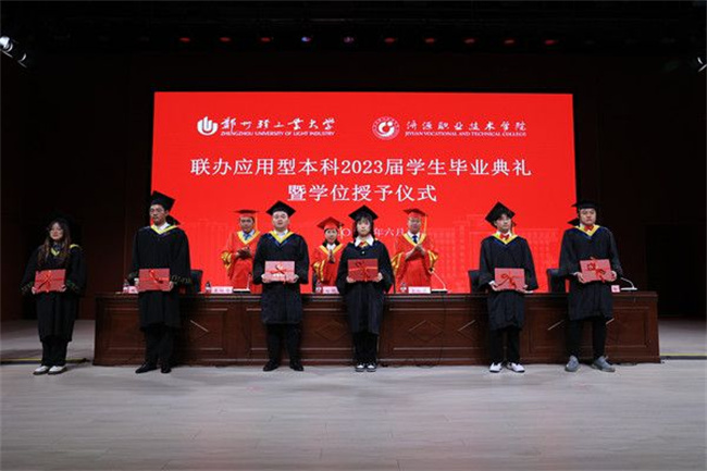 王四戰(zhàn)代表學(xué)校領(lǐng)導(dǎo)班子和全體師生,向畢業(yè)生致以祝賀和祝福,向鄭州輕工業(yè)大學(xué)表示感謝,向為同學(xué)們成長付出心血的老師和家長致以崇高敬意。他說,經(jīng)過四年的學(xué)習(xí),大家已經(jīng)從一個個懵懂少年,成長為理性、成熟、睿智、穩(wěn)健的有志青年,成為了社會急需的高素質(zhì)技術(shù)技能人才,即將奔赴祖國各地建功立業(yè)。在求學(xué)的四年,黨和國家的盛事如此集中地相伴在大家的記憶中,人生軌跡與民族復(fù)興緊密相連,大家是被寄予厚望的“強(qiáng)國一代”。他深情寄語畢業(yè)生,一是希望畢業(yè)生胸懷天下,志存高遠(yuǎn),要始終胸懷實現(xiàn)中國式現(xiàn)代化的戰(zhàn)略全局,將個人的前途命運與國家同頻共振、與民族休戚與共,將個人理想植根于黨和人民的事業(yè)中,把個人追求融入到國家發(fā)展、民族復(fù)興的時代洪流中,立志為實現(xiàn)中華民族的偉大復(fù)興而奮斗終身,在報效祖國、服務(wù)人民、奉獻(xiàn)社會中實現(xiàn)人生價值,以“心底無私天地寬”的境界格局做人做事,以時代精神涵養(yǎng)家國情懷,仰望星空、腳踏實地,讓成長的腳步更加堅定有力。二是希望畢業(yè)生勇?lián)姑,苦干實干。面對新的歷史使命,繼續(xù)弘揚愚公移山精神和工匠精神,用實干高揚希望的風(fēng)帆,用技能成就美好的未來,努力成為有理想、敢擔(dān)當(dāng)、能吃苦、肯奮斗、精技藝、會創(chuàng)新的新時代新愚公。三是希望畢業(yè)生各美其美,美美與共。樹立自信,堅持個體的獨特性和不可復(fù)制性,充分發(fā)揮自身的積極性、主動性和創(chuàng)造性,學(xué)會尊重、理解和包容,正確處理自己與他人之間的關(guān)系,堅持以德立身,智慧行事,努力做到與人為善,待人以誠,擁有助人為樂、成人之美的優(yōu)秀品質(zhì),實現(xiàn)合作共贏。