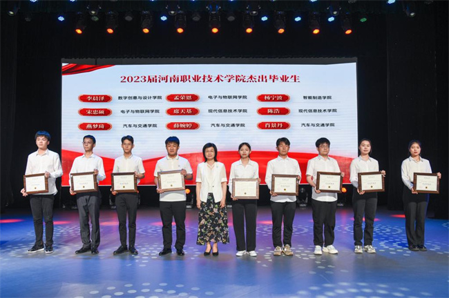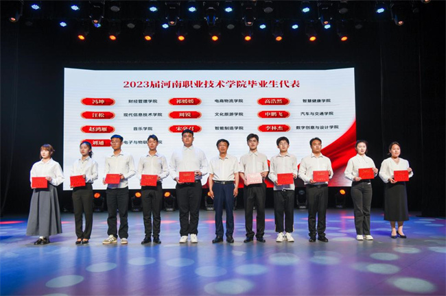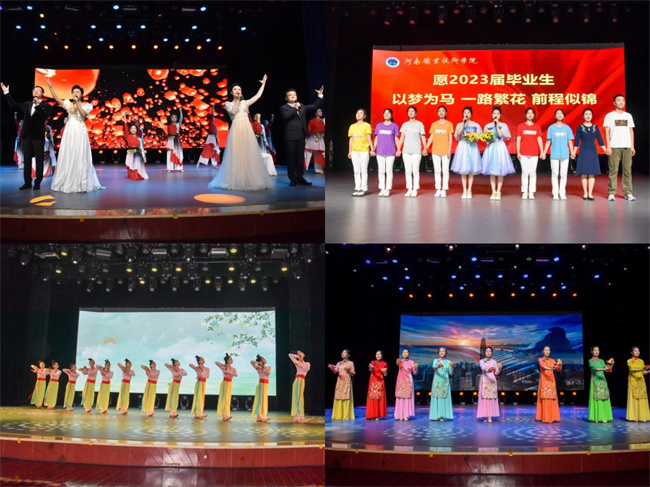 隨后,與會師生一同觀看了歡送畢業(yè)生匯演。畢業(yè)歌曲聯(lián)唱《鳳凰花開的路口》和《光陰的故事》引起了全場同學(xué)的強烈共鳴,反映了畢業(yè)生們對校園生活的懷念和不舍;獲全國高校心理情景劇二等獎的《尋心》,講述了當代大學(xué)生面臨的心理困惑和領(lǐng)悟成長的故事;獲河南省大學(xué)生科技文化藝術(shù)節(jié)舞蹈類一等獎的《灼灼芳華》和快板書《道路》展現(xiàn)了當代河職學(xué)子的青春活力與時代擔當;典禮在歌伴舞《復(fù)興的力量》中緩緩落幕,與會領(lǐng)導(dǎo)、老師和畢業(yè)生代表一起合影留念。