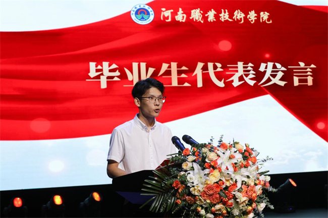 電子與物聯(lián)網(wǎng)學(xué)院孟榮恩代表畢業(yè)生發(fā)言,表達了對母校、老師和同學(xué)的感激之情,表示在河職度過的青春歲月將是人生中的寶貴回憶,將持續(xù)秉持“河職校訓(xùn)”和“河職精神”,用在校所學(xué),回饋社會,爭做一個胸懷大志并腳踏實地的人,成為一個富有責任并勇挑重擔的人。