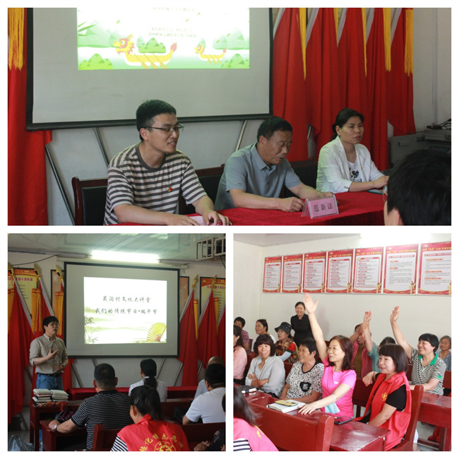李森老師以《濃情粽香迎端午鄉(xiāng)風文明助振興》為題,從端午節(jié)的風俗、端午節(jié)的由來和走進屈原三個方面與各位村民進行了精彩分享,帶領大家領略中華傳統(tǒng)節(jié)日的魅力,感悟端午節(jié)的文化和內涵,與屈原共情、激發(fā)愛國主義情感。在文化大講堂的互動環(huán)節(jié),莪溝村村民踴躍參與,積極搶答關于端午文化知識的問題,加深了村民對傳統(tǒng)文化的了解,堅定了文化自信,有力地促進了農村精神文明建設。