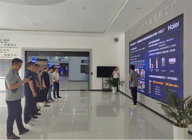 在參觀產(chǎn)品生產(chǎn)線、公司發(fā)展歷程和文化展廳的過程中,鄭州海爾新能源科技有限公司人力資源部吳佰威總經(jīng)理介紹了海爾集團(tuán)的發(fā)展情況及鄭州海爾的建設(shè)情況,目前企業(yè)的產(chǎn)品種類、集團(tuán)與學(xué)校合作的政策和內(nèi)容、公司對人才需求和使用情況等。