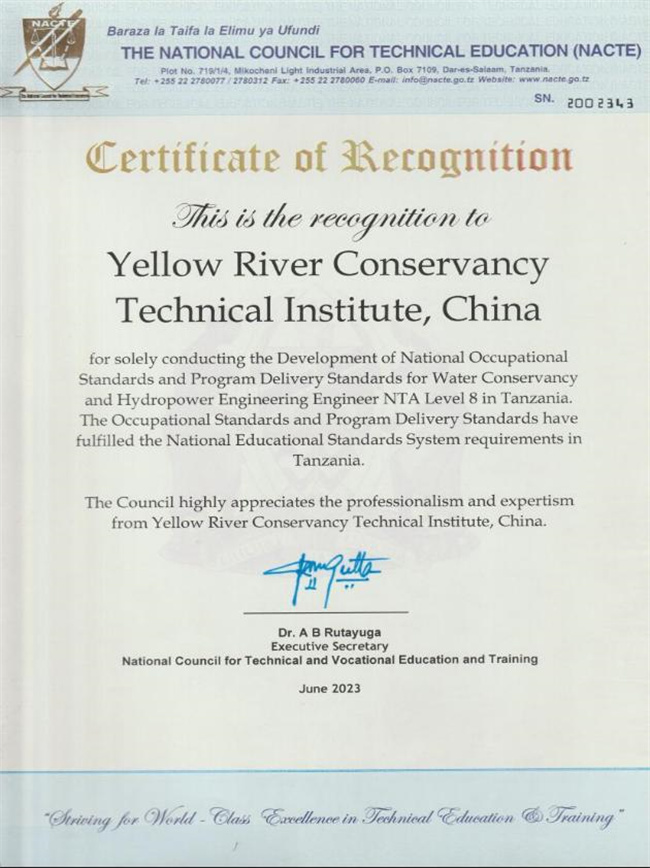 坦桑尼亞水利水電工程工程師NTA8級國家職業(yè)標準及配套的專業(yè)教學(xué)標準認證,對于該校專業(yè)國際化建設(shè)、中國職業(yè)標準的推廣與輸出具有重要的實踐意義。坦桑尼亞新能源工程(水力)NTA8級國家職業(yè)標準已進入尾聲,即將認證。埃塞俄比亞大壩安全與集水技術(shù)工程師、灌溉與排水系統(tǒng)技術(shù)工程師國家職業(yè)標準正在研制中,也均為最高等級。接下來,水利工程學(xué)院將繼續(xù)聯(lián)合我國“走出去”企業(yè),深入推進“中文+職業(yè)技能”項目,持續(xù)打造“大禹學(xué)院”人才培養(yǎng)品牌,助力“一帶一路”國家實現(xiàn)人才培養(yǎng)本土化,提高水利類專業(yè)國際化水平和“一帶一路”服務(wù)能力,促進專業(yè)國際化交流與合作辦學(xué)水平的整體提升。