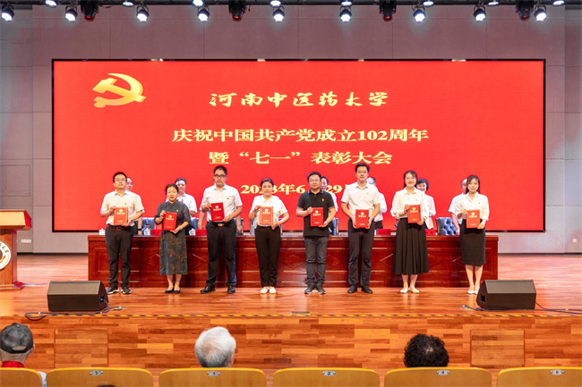 中新河南網(wǎng)6月30日電(趙會杰 郭寅虎) 2023年6月29日,河南中醫(yī)藥大學慶祝中國共產黨成立102周年暨“七一”表彰大會在龍子湖校區(qū)俊學樓B101報告廳舉行。河南中醫(yī)藥大學黨委書記李小芳出席會議并講話,校長王耀獻主持會議。校領導張小平、李建生、王少玉、田力、張加民、苗明三,全體中層干部、獲“光榮在黨50年”紀念章黨員代表、黨支部書記代表、黨員代表、受表彰的先進集體和個人代表參加會議。