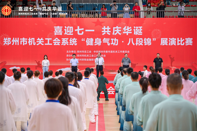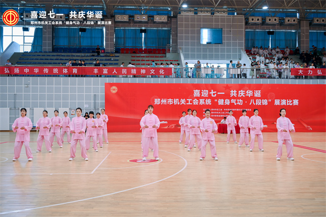 本次比賽共有來64 支代表隊,1000 余名選手參賽。5月初,鄭州市總工會組織了為期 2 個月的“健身氣功·八段錦”培訓(xùn)及推廣普及。該院選派體育部教師王嘉锘作為代表,在總工會進(jìn)行專業(yè)系統(tǒng)的八段錦專業(yè)培訓(xùn),隨后,經(jīng)過該院工會組織號召,組建出一支50余人的八段錦比賽隊伍,并精益求精選派出20名優(yōu)秀的隊員參加工會的展演比賽。本次主動請纓參加比賽的隊員有學(xué)院中層領(lǐng)導(dǎo)干部、有資深教師、有青年輔導(dǎo)員,展現(xiàn)出學(xué)院中層領(lǐng)導(dǎo)干部積極作為、敢于擔(dān)當(dāng)?shù)挠職馀c魄力和青年教師孜孜不倦、學(xué)無止境的精神品質(zhì)。最終該院獲得二等獎的好成績。