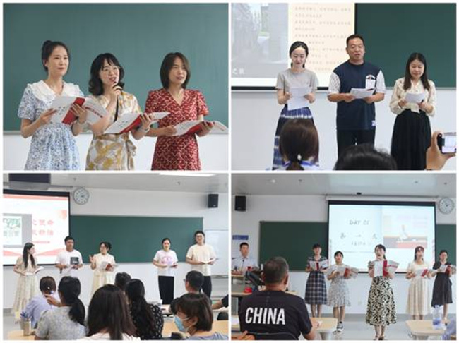 隨后,培訓(xùn)班四個(gè)學(xué)習(xí)小組進(jìn)行了形式多樣、精彩紛呈的匯報(bào)展演。以金融學(xué)院副院長(zhǎng)石玫瓏為組長(zhǎng)、由金融學(xué)院和基礎(chǔ)部組成的第一組,以“多彩北京”為題,采用紅色、黃色、藍(lán)色、綠色、白色五個(gè)篇章表達(dá)了培訓(xùn)收獲及對(duì)未來教學(xué)的期待,內(nèi)容充實(shí),風(fēng)趣幽默,贏得陣陣掌聲。