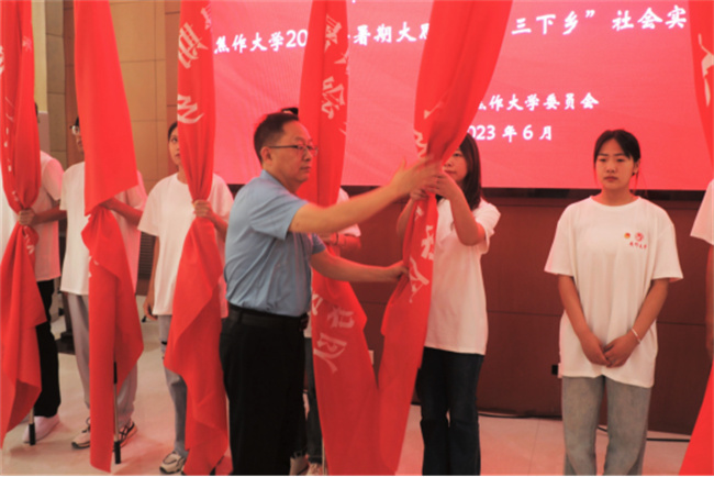 啟動(dòng)儀式上,靳賢勝宣布了《焦作大學(xué)2023年暑期“三下鄉(xiāng)”社會(huì)實(shí)踐活動(dòng)立項(xiàng)名單》。