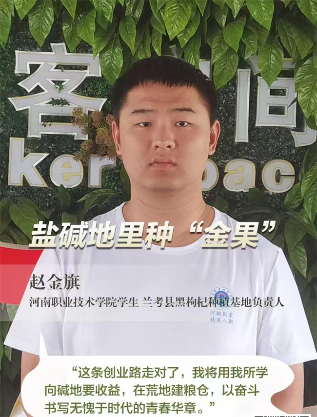 趙金旗今年22歲,是河南職業(yè)技術(shù)學(xué)院園林專業(yè)的學(xué)生,同時(shí)也是一名年輕的創(chuàng)業(yè)者。2018年,還在讀中職的他便開(kāi)啟了創(chuàng)業(yè)之路,立志讓蘭考鹽堿地上長(zhǎng)出“金果”。