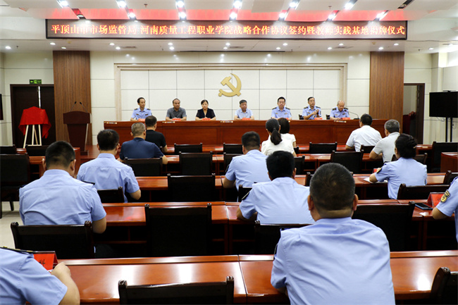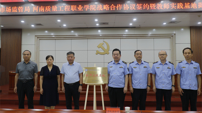李志萍在致辭中表示,市場監(jiān)督管理局肩負著我市質(zhì)量提升、品牌建設、標準引領、檢驗檢測、認證認可等重任,而河南質(zhì)量工程職業(yè)學院的辦學特色、專業(yè)布局與此高度契合,雙方有著廣泛的合作潛力。此次簽約和揭牌是校地雙方踐行科教興國、質(zhì)量強國戰(zhàn)略的有力舉措,是深入貫徹落實《質(zhì)量強國建設綱要》、推動質(zhì)量強市戰(zhàn)略的具體行動,更是雙方多年友好合作關系的進一步拓展和升華。期待雙方以此為契機,發(fā)揮各自優(yōu)勢,建立緊密合作關系,圍繞科學研究、人才培養(yǎng)、公共服務平臺打造、質(zhì)量知識普及、質(zhì)量文化弘揚等方面,在多層次、多領域,開展長期、穩(wěn)定、深度的合作,為平頂山“壯大新動能 奮進百強市”提供強有力的人才和質(zhì)量支撐。