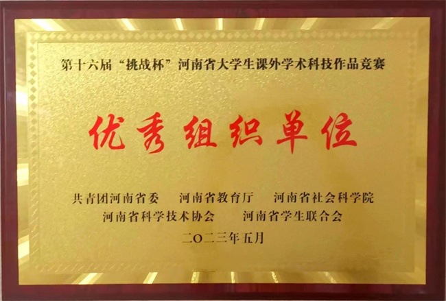 中新河南網(wǎng)7月14日電 7月13日, 2023年“挑戰(zhàn)杯”河南省大學(xué)生課外學(xué)術(shù)科技作品競賽結(jié)果公布,鄭州經(jīng)貿(mào)學(xué)院憑借一等獎2項、二等獎12項、三等獎20項的好成績,獲評大賽“優(yōu)秀組織單位”。獲獎層次和數(shù)量在全省同類院校中位居前列。
