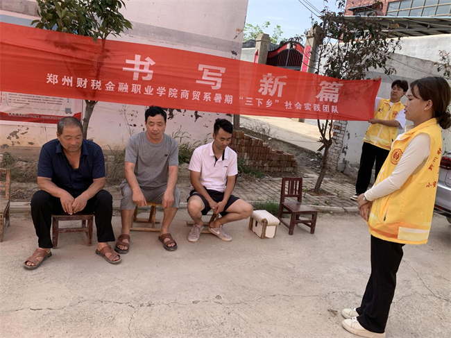百年風(fēng)雨兼程,黨史薪火相傳。鄭州財稅金融職業(yè)學(xué)院幫助引導(dǎo)加強大學(xué)生思想道德修養(yǎng),培養(yǎng)大學(xué)生創(chuàng)新精神和實踐能力,推廣素質(zhì)拓展使“三下鄉(xiāng)”活動成為我系素質(zhì)教育的試驗田。此次黨史宣講實踐活動,將黨史故事搬進(jìn)村莊農(nóng)家,以豐富形式講好黨史故事,進(jìn)一步傳播了紅色文化,堅定了群眾理想信念,讓黨史教育走新更走“心”,積極助力了鄉(xiāng)村思想文化振興。