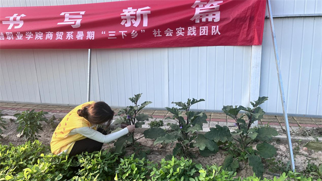 文雪珂同學(xué)查看蔬菜生長情況