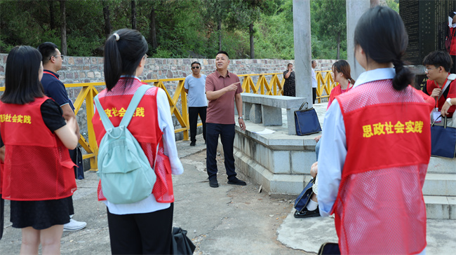18日上午,師生們沿著紅旗渠干渠甬道走“紅飄帶”,觀摩了紅旗渠創(chuàng)業(yè)洞、團結洞、兩半山、鷹嘴山、青年洞等偉大工程。在走的過程中,師生們了解到青年洞修建時創(chuàng)造了連環(huán)炮、瓦缸窯炮、三角炮等多項新的爆破技術,由此學習到林縣人民在極其艱難的條件下修筑紅旗渠時所展現(xiàn)的艱苦奮斗、能干會干的精神。師生們紛紛感嘆,在六幾年那個敏感而特殊的年代,全國幾乎所有工程都叫停的情況下,楊貴書記冒著巨大的政治風險、頂住壓力,偷偷安排300名青年人施工,爭分奪秒修建了水渠關鍵點“青年洞”,讓林縣人民的希望成真,楊貴書記的行為讓師生們真正的理解了 “替擔當?shù)母刹繐,替負責的干部負?rdquo;的深刻內涵。最后,在青年洞旁黨旗下,邱啟光老師帶領師生們學習了青年洞的簡介,師生們面對鮮艷的黨旗,重溫入黨誓詞,鏗鏘有力的聲音彰顯出屬于新時代青年的自豪感和使命感。