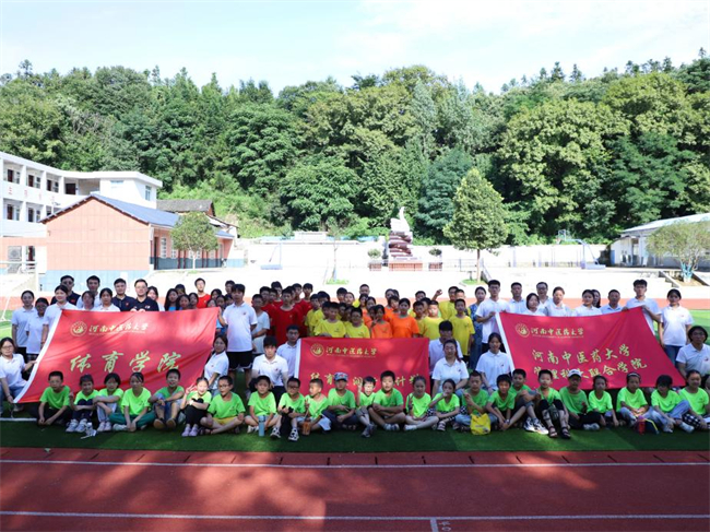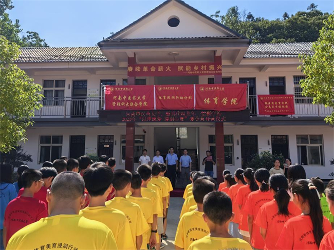 中新河南網(wǎng)7月21日電(王君樂(lè)) 為深入學(xué)習(xí)貫徹黨的二十大精神,引導(dǎo)青年學(xué)生堅(jiān)定責(zé)任擔(dān)當(dāng),把課堂學(xué)習(xí)和社會(huì)實(shí)踐緊密結(jié)合。2023年7月9日至15日,河南中醫(yī)藥大學(xué)體育學(xué)院以獲批體育浸潤(rùn)行動(dòng)計(jì)劃為契機(jī),以“山”為主線追尋總書記河南足跡,前往信陽(yáng)市新縣代咀九年一貫制學(xué)校開(kāi)展“以體筑夢(mèng),浸潤(rùn)心靈”暑期“三下鄉(xiāng)”社會(huì)實(shí)踐活動(dòng),帶領(lǐng)組織老區(qū)的孩子們一起強(qiáng)身健體、傳承文化、啟心育智、厚植情懷。