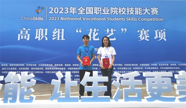 中新河南網(wǎng)7月25日電(王紅波) 7月19至20日,由教育部主辦的2023年全國職業(yè)院校技能大賽高職組“花藝”賽項在云南林業(yè)職業(yè)技術(shù)學(xué)院舉行,來自全國30個省(市、自治區(qū))的59支代表隊參賽。河南職業(yè)技術(shù)學(xué)院數(shù)字創(chuàng)意與設(shè)計學(xué)院學(xué)生劉通代表學(xué)校參賽,憑借優(yōu)良的素質(zhì)和扎實的技能,最終榮獲“花藝”賽項一等獎,教師李寧榮獲“優(yōu)秀指導(dǎo)教師”稱號。