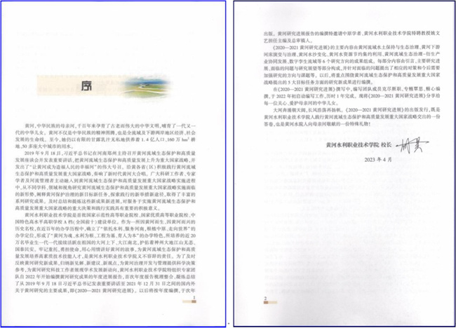 為了反映黃河研究新成果,歸納新見解、新建議、新觀點,及時總結(jié)和提煉這些新成果新進展,為黃河治理開發(fā)與管理提供科學決策參考,服務(wù)黃河流域生態(tài)保護和高質(zhì)量發(fā)展重大國家戰(zhàn)略,黃河水利職業(yè)技術(shù)學院特組織專家團隊自2022年開始編撰黃河研究成果的年度進展報告。首次年度報告《黃河研究進展》(2020-2021)梳理整合、凝練總結(jié)了國內(nèi)外關(guān)于黃河研究的主要成果,主要由黃河流域水土保持與生態(tài)治理、黃河下河床演變與治理、黃河水沙變化、黃河水資源節(jié)約集約利用、黃河流域生態(tài)治理——衍生業(yè)協(xié)同發(fā)展、數(shù)字孿生流域等6個研究方向的成果組成。每部分內(nèi)容由引言、主要研究進展、面臨的問題與研究展望等部分構(gòu)成,并針對面臨的問題提出了相應(yīng)的對策和今后需要加強研究的方向與課題等。