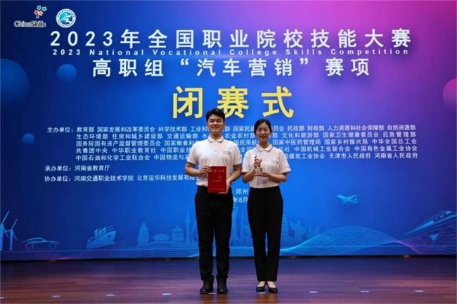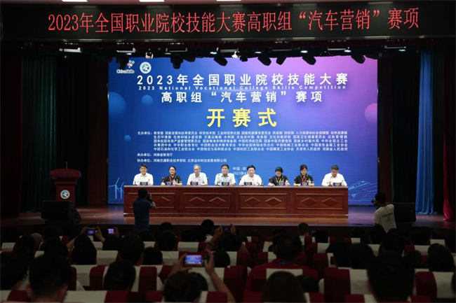中新河南網(wǎng)8月26日電(馬雪剛 葉展 徐國(guó)瑞 劉月 楊雨 任鈺瑩 毛天瑞) 8月23至25日,2023年全國(guó)職業(yè)院校技能大賽(高職組)“汽車營(yíng)銷”賽項(xiàng)在河南交通職業(yè)技術(shù)學(xué)院舉行。河南省教育廳二級(jí)巡視員董玉民出席開賽式并宣布大賽開賽,河南省教育廳職業(yè)教育與成人教育處二級(jí)調(diào)研員史文生出席閉賽式并宣布大賽閉賽。全國(guó)汽車職業(yè)教育教學(xué)指導(dǎo)委員會(huì)副主任委員李怡民、大賽專家組組長(zhǎng)張紅英、裁判組組長(zhǎng)李燕、監(jiān)督仲裁組組長(zhǎng)王麗霞,教育部職業(yè)教育發(fā)展中心高級(jí)宣傳策劃經(jīng)理、教育部大賽辦特派監(jiān)督仲裁員汪莎莎,北京運(yùn)華科技發(fā)展有限公司總經(jīng)理廖明,河南交通職業(yè)技術(shù)學(xué)院黨委書記劉志偉、校長(zhǎng)焦宏濤等領(lǐng)導(dǎo)和專家出席大賽活動(dòng),來自全國(guó)各省、自治區(qū)、直轄市和新疆生產(chǎn)建設(shè)兵團(tuán)的68支參賽隊(duì)伍320多名師生參加賽事活動(dòng)。