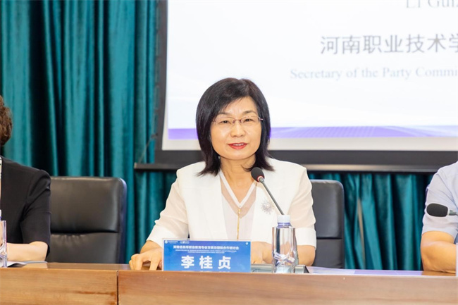 李桂貞在致辭中介紹了學(xué)校的辦學(xué)歷史和特色,重點分享了學(xué)校在國際合作與交流中的成果。她表示,河南職院將把加強國際交流合作,作為提升國際影響力、競爭力的重要賽道。不斷加大與職業(yè)教育先進(jìn)國家和“一帶一路”沿線國家的合作,扎根中國、融通世界,立足時代、面向未來,堅持“教隨產(chǎn)出、產(chǎn)教同行”,立足學(xué)校骨干(特色)專業(yè),“走出去”和“引進(jìn)來”雙線發(fā)展并有所側(cè)重,做強河南職業(yè)教育國際合作品牌,打造具有河南特色的職業(yè)教育海外辦學(xué)項目、海外職業(yè)技術(shù)學(xué)院,推動職業(yè)教育與中國企業(yè)一道“走出去”,與世界共享河南職業(yè)教育改革成果。