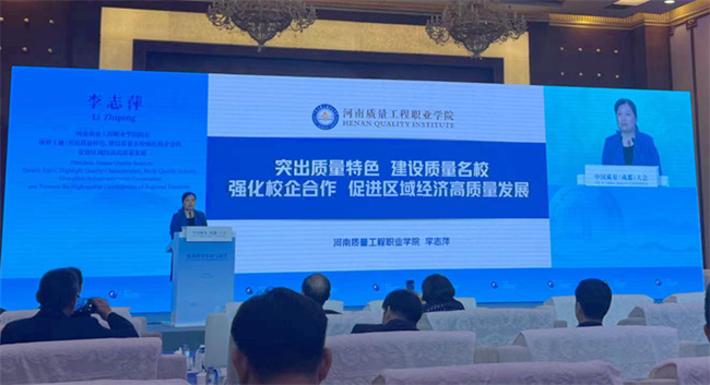 李志萍以《突出質(zhì)量特色、建設(shè)質(zhì)量名校、強(qiáng)化校企合作,促進(jìn)區(qū)域經(jīng)濟(jì)高質(zhì)量發(fā)展》為題作主題演講,介紹了學(xué)院的基本情況、歷史沿革、辦學(xué)特色,交流了學(xué)院聚焦質(zhì)量強(qiáng)國戰(zhàn)略和職業(yè)教育改革發(fā)展需要,突出學(xué)院質(zhì)量特色服務(wù)區(qū)域經(jīng)濟(jì)發(fā)展,培養(yǎng)職業(yè)技能和質(zhì)量素養(yǎng)的復(fù)合型技術(shù)技能人才的經(jīng)驗做法。一是在專業(yè)設(shè)置上突出學(xué)院質(zhì)量特色,融入地方發(fā)展需求;二是依托校企合作服務(wù)平臺,提升學(xué)生實踐技能;三是努力培養(yǎng)具有職業(yè)技能和質(zhì)量素養(yǎng)的復(fù)合型技術(shù)技能人才;四是加強(qiáng)校園質(zhì)量文化建設(shè),開辟質(zhì)量教育新境界;五是政行校企融合,服務(wù)地方經(jīng)濟(jì)發(fā)展。