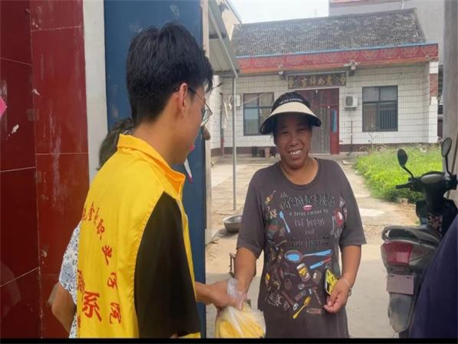 在幫忙整理檔案資料時(shí),宣講團(tuán)成員看到了村里的幾家低保戶生活條件不好,宣講團(tuán)成員在中午短暫休息后前往村莊附近的超市采購(gòu)了一些水果,隨后前往部分低保戶家探望拜訪老人并與他們聊天解悶兒。