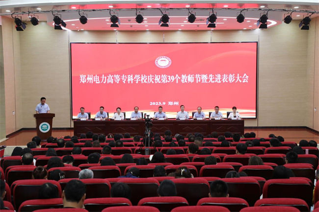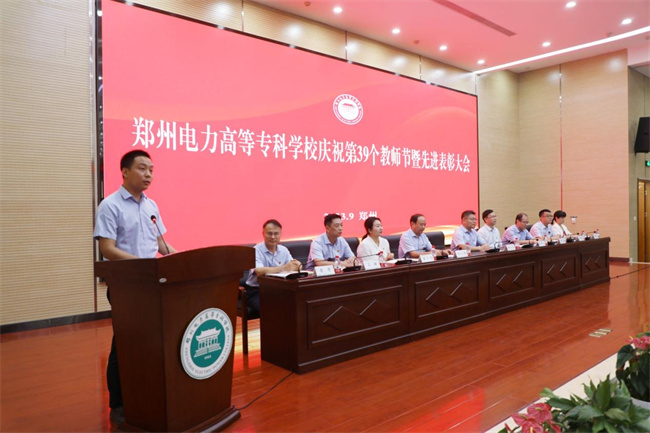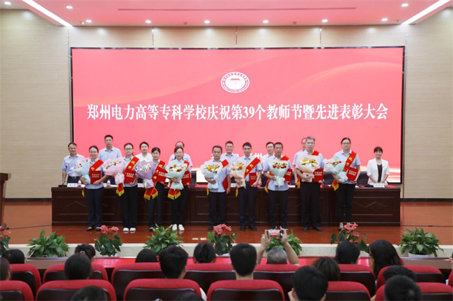 中新河南網(wǎng)9月7日電(阿依古麗·艾力江) 為了充分展現(xiàn)鄭州電力高等?茖W(xué)校高質(zhì)量教師隊伍建設(shè)的突出成就和廣大教師立德樹人、自信自強的精神風(fēng)貌,大力弘揚尊師重教的良好風(fēng)尚。9月5日,鄭州電力高等?茖W(xué)校在西階梯教室隆重舉行慶祝第三十九個教師節(jié)暨先進表彰大會。學(xué)校黨委書記楊義波、校長、黨委副書記楊建華、二級職員宗萬偉、黨委副書記、副校長胡斌、紀委書記、工會主席武予然、副校長黃鵬、三級職員王林、高級管理師周明霞、高級專家張勇,以及全體教職工和部分學(xué)生代表參加了此次表彰大會。會議由黨委副書記、副校長胡斌主持。