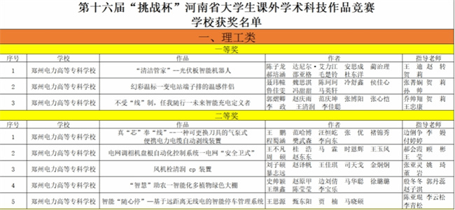 鄭州電力高等?茖W校在省大學生課外學術科技作品競賽中再獲佳績