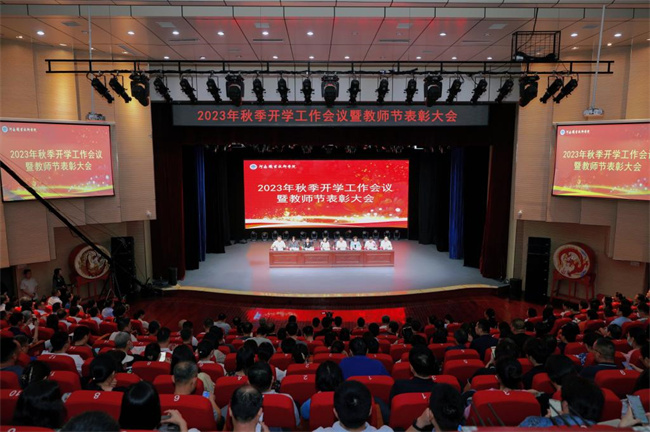 中新河南網9月10日電(趙宇輝) 9月7日下午,河南職業(yè)技術學院在音樂廳召開2023年秋季開學工作會議暨教師節(jié)表彰大會。會議對學校做出突出貢獻的先進集體和個人進行了表彰,校長梅樂堂作2023年秋季工作報告,黨委書記李桂貞作總結講話。學校領導班子成員、中層副職以上干部、教師代表參加會議。會議由黨委副書記、紀委書記田華主持。