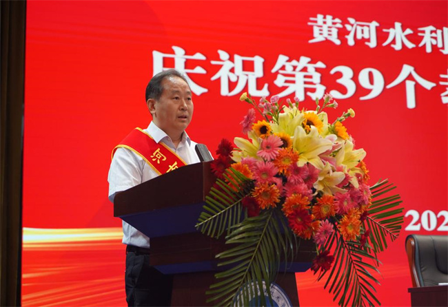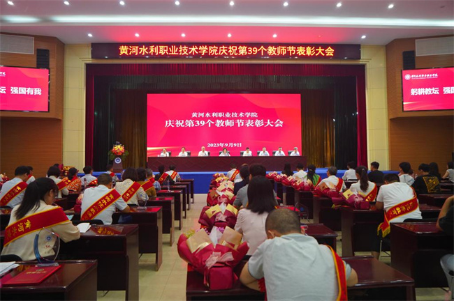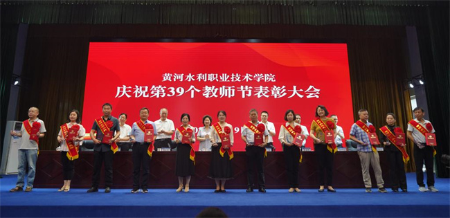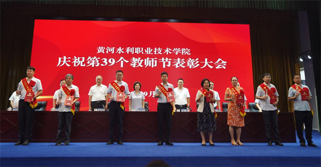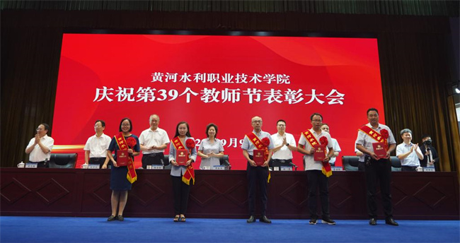 胡昊宣讀了《關(guān)于表彰河南省教育系統(tǒng)先進(jìn)集體和先進(jìn)個(gè)人的決定》《關(guān)于表彰開封市教育系統(tǒng)先進(jìn)集體和先進(jìn)個(gè)人的決定》《中共黃河水利職業(yè)技術(shù)學(xué)院委員會(huì)關(guān)于表彰第三屆教職工道德模范的決定》表彰文件。周志琦宣讀了《關(guān)于表彰2023年度優(yōu)秀教師和優(yōu)秀教育工作者的決定》《關(guān)于表彰2023年從事教育教學(xué)工作滿三十年教師的決定》表彰文件。學(xué)生代表向獲獎(jiǎng)教師代表獻(xiàn)花,表達(dá)了學(xué)子對(duì)老師們的崇高敬意和誠摯祝福 。河南省優(yōu)秀教師、環(huán)境工程學(xué)院博士姚新鼎,學(xué)校優(yōu)秀教師代表李梅華,學(xué)生代表李雪分別進(jìn)行了發(fā)言。