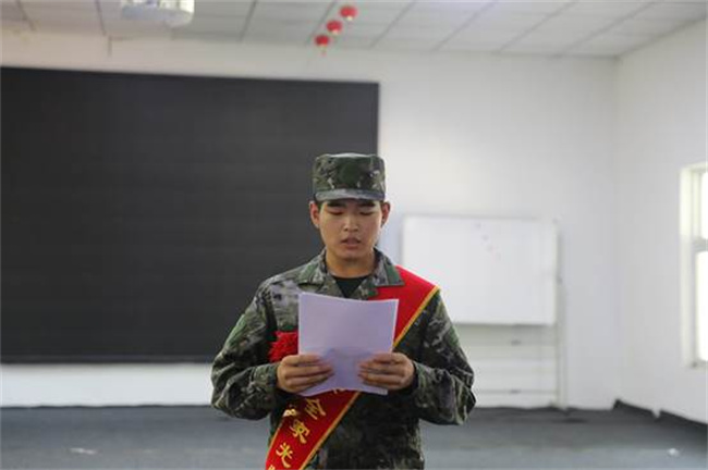 會上,學(xué)生處副處長郭建寬代表學(xué)院武裝部對即將奔赴軍營的入伍學(xué)子們表達祝福和期望。希望他們在部隊安心服役、建功軍營,學(xué)院將會一如既往做好優(yōu)撫優(yōu)待工作,為入伍新兵解除后顧之憂,勉勵他們樹立從軍報國的崇高理想,做好吃苦耐勞的思想準(zhǔn)備,經(jīng)得住考驗,練好過硬本領(lǐng),努力把自己培養(yǎng)成為“聽黨指揮、能打勝仗、作風(fēng)優(yōu)良”的新一代合格軍人,為自己、為家庭、為母校爭光添彩。