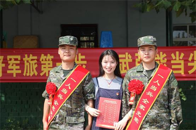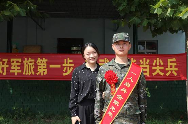 學(xué)院武裝干事與入伍新兵合影