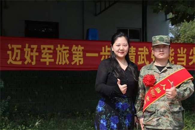 輔導(dǎo)員與入伍新兵合影
