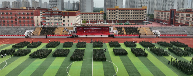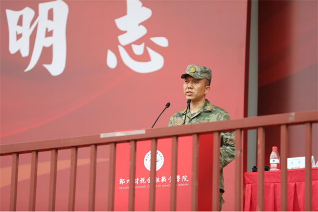 隨后,鄭州市管城區(qū)區(qū)委常委管城區(qū)人武部政委李勇代表管城區(qū)人武部向同學(xué)們致以真摯的問候,李政委勉勵(lì)同學(xué)們厚植家國(guó)情懷,在中華民族偉大復(fù)興的征途中踐行初心、激揚(yáng)青春。同時(shí)號(hào)召同學(xué)們牢記人民軍隊(duì)的優(yōu)良傳統(tǒng)和作風(fēng),鞏固和深化軍訓(xùn)成果,勤奮學(xué)習(xí),全面發(fā)展,成為德智體美勞全面發(fā)展的社會(huì)主義建設(shè)者和接班人。
