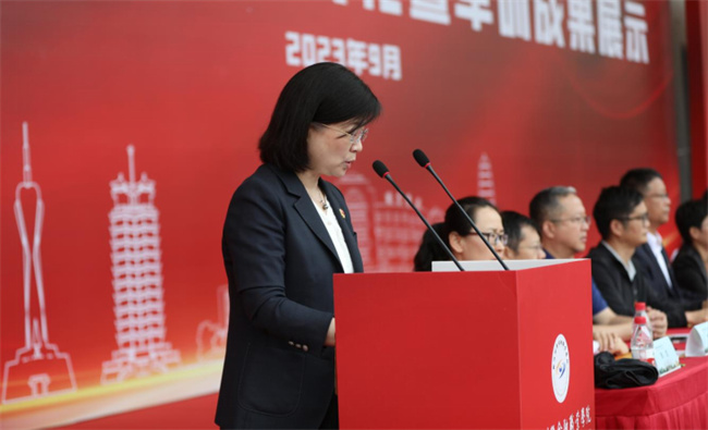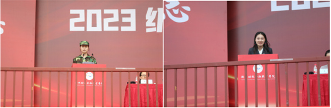 2023級(jí)新生代表朱爰霏、輔導(dǎo)員代表閆雨婷發(fā)言