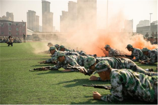 在莊嚴(yán)的升國旗儀式后,校黨委書記汪詩懷檢閱軍訓(xùn)方隊。受訓(xùn)方隊進行分列式展示。同學(xué)們整齊的步伐、嘹亮的口號、高昂的斗志展示了軍訓(xùn)的優(yōu)秀成果和積極進取、奮發(fā)向上的精神風(fēng)貌,贏得了現(xiàn)場師生的陣陣掌聲。隨后進行的軍訓(xùn)節(jié)目匯報表演內(nèi)容豐富、形式新穎,為會操演練增添了樂趣與品味,贏得了現(xiàn)場師生的陣陣喝彩。