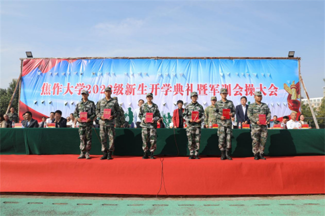 隨后,新生代表、在校生代表、教師代表先后發(fā)言。校黨委委員、副校長劉際平宣讀了《焦作大學(xué)關(guān)于表彰2023級軍訓(xùn)工作先進集體、先進個人的決定》。校領(lǐng)導(dǎo)和部隊首長為軍訓(xùn)工作先進集體、優(yōu)秀教官、優(yōu)秀指導(dǎo)員代表頒獎,山陽區(qū)武裝部部長黃應(yīng)龍作了講話。