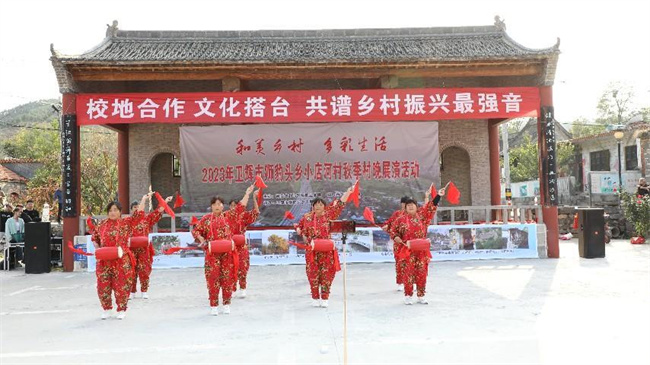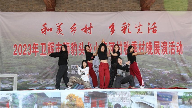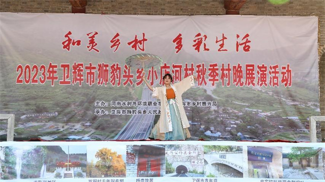 此次“和美鄉(xiāng)村、多彩生活”2023衛(wèi)輝市獅豹頭鄉(xiāng)小店河村秋季村晚展演活動(dòng)由河南水利與環(huán)境職業(yè)學(xué)院、衛(wèi)輝市鄉(xiāng)村振興局聯(lián)合主辦,衛(wèi)輝市獅豹頭鄉(xiāng)人民政府承辦,共編排了24個(gè)節(jié)目。既有河南水利與環(huán)境職業(yè)學(xué)院學(xué)生的傾情演出,又有獅豹頭鄉(xiāng)12個(gè)鄉(xiāng)村文藝團(tuán)隊(duì)的精彩演繹。通過舞蹈、廣場(chǎng)舞表演、歌曲、戲曲演唱、武術(shù)、抖空竹才藝展示等多種表現(xiàn)形式,演繹了一場(chǎng)精美的視聽盛宴,為鄉(xiāng)村文化的多元化發(fā)展注入了文化凝聚力和精神推動(dòng)力,使群眾在文化盛宴中共享鄉(xiāng)村振興發(fā)展成果。精彩的演出將展演活動(dòng)推向一波波高潮,現(xiàn)場(chǎng)觀眾不斷揮舞手中的國旗,營造了歡快愉悅的氛圍,展演活動(dòng)取得圓滿成功。