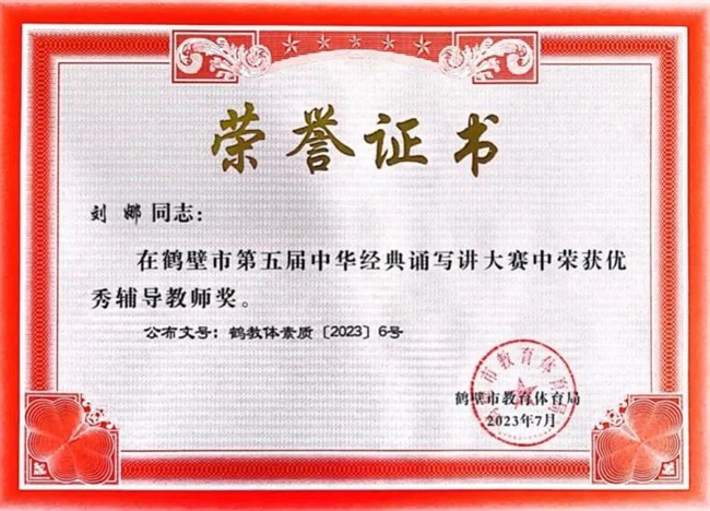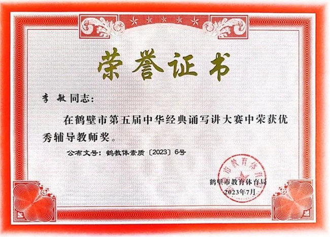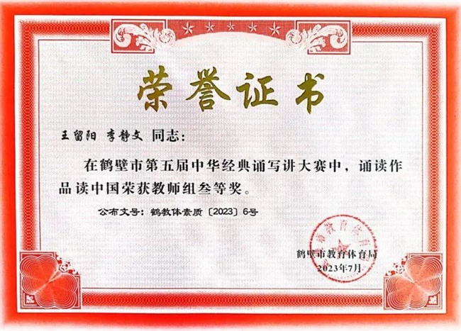 在市級評選中,該校教師王留陽、李靜文的《讀中國》獲教師組三等獎;高職2021級嬰幼兒托育服務(wù)與管理班學(xué)生王啟航的《青春中國》獲得職業(yè)院校組二等獎;教師劉娜、李敏獲“優(yōu)秀指導(dǎo)老師”;學(xué)校榮獲“優(yōu)秀組織獎”。