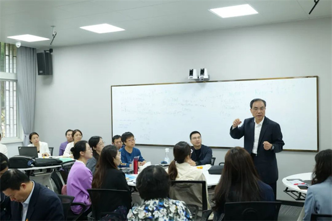 在培訓(xùn)階段開門說課環(huán)節(jié),尹洪斌一行來到說課現(xiàn)場聽課、指導(dǎo)并與專家評委、參賽選手親切交流。尹洪斌指出,參賽選手備戰(zhàn)國賽,時間緊,任務(wù)重,挑戰(zhàn)嚴(yán)峻。此次“云上大練兵”是對參賽選手的查漏補(bǔ)缺,是“大聽課、大調(diào)研”“大練兵、大比武”等活動成果的“大凝練”。參賽選手要認(rèn)真研讀教育部文件,不斷打磨作品,依據(jù)學(xué)情分析報告,結(jié)合鮮活的案例分析,進(jìn)而凝練、提升,從而打造出有亮點(diǎn)、有河南特色的精品課堂,做到符合教育部教育教學(xué)目的的要求,符合思政課的要求,符合學(xué)生思想政治各方面提升的要求。專家評委既要當(dāng)好裁判員,又要當(dāng)好領(lǐng)跑員,還要當(dāng)好指導(dǎo)員,對參賽選手做到實事求是、毫無保留。尹洪斌強(qiáng)調(diào),參賽選手要將所學(xué)所悟,內(nèi)化于心、外化于行,展現(xiàn)河南高校思政課教師形象和風(fēng)采。