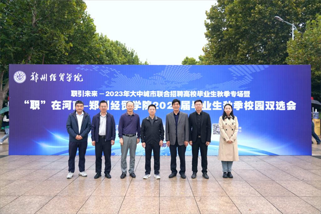 中新河南網(wǎng)10月20日電 為促進畢業(yè)生和用人單位實現(xiàn)供需精準對接,幫助畢業(yè)生搶抓就業(yè)先機,促進高質(zhì)量就業(yè)。10月19日,鄭州經(jīng)貿(mào)學院舉辦職引未來—2023年大中城市聯(lián)合招聘高校畢業(yè)生秋季專場暨“職”在河南—鄭州經(jīng)貿(mào)學院2024屆畢業(yè)生秋季校園雙選會。鄭州市人力資源和社會保障局四級調(diào)研員徐立新、鄭州市就業(yè)創(chuàng)業(yè)服務中心主任王保華與學校領導趙榴明、張超、陳凌峰等一同蒞臨雙選會現(xiàn)場指導工作。