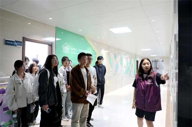 在心聆使者的引導下,同學們有序參觀了大學生心理健康中心,體驗了心理功能室中多樣的設(shè)備,了解了心理健康教育中心的咨詢流程及預(yù)約方式。
