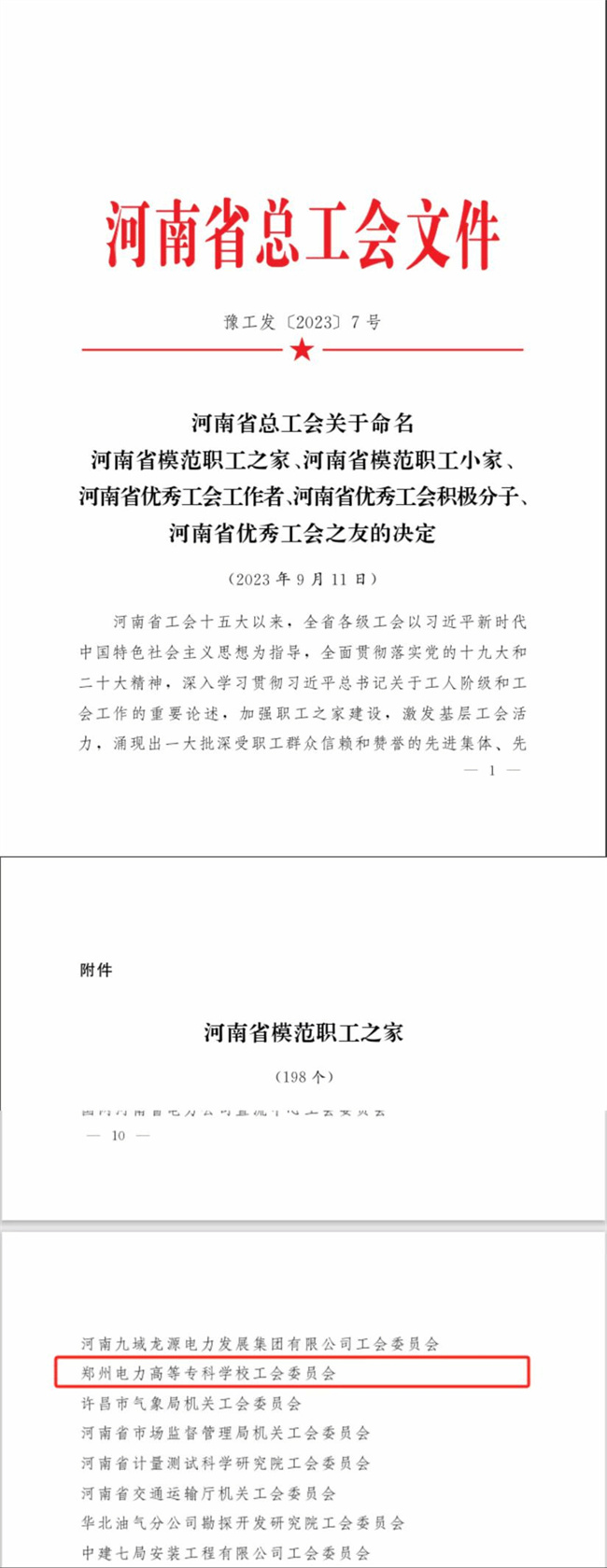 鄭州電力高等專科學(xué)校工會(huì)被授予“河南省模范職工之家”榮譽(yù)稱號(hào)