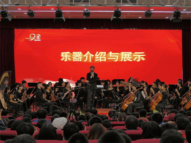 中新河南網(wǎng)10月28日電(阿依古麗·艾力江) 秋風(fēng)送爽、丹桂飄香。為慶祝鄭州電力高等?茖W(xué)校建校90周年,推動高雅藝術(shù)進(jìn)校園,提高學(xué)生審美和人文素養(yǎng),10月24日,學(xué)校特邀河南機(jī)電職業(yè)學(xué)院知行交響樂團(tuán),在在校學(xué)生中心東階梯教室舉辦了“九秩弦歌憶芳華 謹(jǐn)懷光明向未來” —慶祝學(xué)校建校90周年交響音樂會。學(xué)校紀(jì)委書記、工會主席武予然,副校長黃鵬出席音樂會。