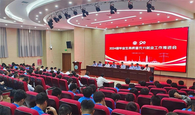 會(huì)上,校長(zhǎng)楊建華作了題為《踏上新征程 勇于新?lián)?dāng) 展現(xiàn)新作為 服務(wù)保障2024屆畢業(yè)生高質(zhì)量充分就業(yè)》的工作報(bào)告,充分肯定了2023屆就業(yè)工作成績(jī)和行之有效的“五化”就業(yè)指導(dǎo)和服務(wù)機(jī)制,研判分析了需要持續(xù)改進(jìn)提升五個(gè)方面的問題和不足,指明了樹立“大就業(yè)觀”,加強(qiáng)就業(yè)工作內(nèi)涵建設(shè),推動(dòng)實(shí)現(xiàn)畢業(yè)生高質(zhì)量充分就業(yè)的“就業(yè)政策系統(tǒng)化、就業(yè)指導(dǎo)個(gè)性化、信息服務(wù)智慧化、就業(yè)服務(wù)精細(xì)化、隊(duì)伍建設(shè)專業(yè)化、招培就一體化”“六化”思路,為學(xué)校做好高質(zhì)量充分就業(yè)工作明確了工作方向和路徑選擇。學(xué)校黨委書記楊義波作了題為《抓好主題教育 突出精神傳承 堅(jiān)定目標(biāo)前行 確保2024屆畢業(yè)生更高質(zhì)量更加充分就業(yè)》的重要講話,強(qiáng)調(diào)要緊扣學(xué)習(xí)貫徹習(xí)近平新時(shí)代中國(guó)特色社會(huì)主義思想主題教育“總要求”,立足崗位、立足實(shí)際,進(jìn)一步提高政治站位,不斷提高政治判斷力、政治領(lǐng)悟力、政治執(zhí)行力,從講政治的高度引領(lǐng)帶動(dòng)高質(zhì)量充分就業(yè);強(qiáng)調(diào)要傳承電專特質(zhì)的“三創(chuàng)一遷”創(chuàng)業(yè)精神、宛西抗戰(zhàn)辦學(xué)精神和新時(shí)代“兩越四心”趕超精神,旗幟鮮明講忠誠(chéng)、旗幟鮮明講擔(dān)當(dāng)、旗幟鮮明講正氣、旗幟鮮明講奉獻(xiàn),增值賦能高質(zhì)量充分就業(yè);強(qiáng)調(diào)要目標(biāo)不變、力度不減、堅(jiān)定前行,以領(lǐng)導(dǎo)集體帶頭沖鋒、職能部門服務(wù)協(xié)同、學(xué)院班子示范帶動(dòng)、學(xué)工人員一線引領(lǐng)、全體學(xué)生同向同行,合力實(shí)現(xiàn)高質(zhì)量充分就業(yè)。電力工程學(xué)院、能源與動(dòng)力工程學(xué)院、電氣工程學(xué)院和2024屆畢業(yè)生代表分別從分類指導(dǎo)精準(zhǔn)幫扶促就業(yè)、專業(yè)對(duì)接產(chǎn)業(yè)促就業(yè)、雙元育人管理服務(wù)促就業(yè)、做好規(guī)劃找準(zhǔn)定位早就業(yè)等幾個(gè)方面進(jìn)行了交流、表態(tài)和分享。