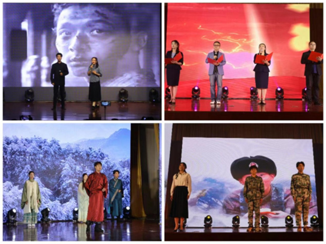“淺吟清唱頌古韻,悠悠詩(shī)情明我心”。在古詩(shī)朗誦《懷川詩(shī)韻》中,我們與先賢對(duì)話,感受懷川詩(shī)人的悠悠文墨;在情景劇《長(zhǎng)安三萬(wàn)里》中,我們仿佛身處大唐,領(lǐng)略長(zhǎng)安盛世風(fēng)華。“弘揚(yáng)先烈精神,賡續(xù)紅色血脈”。舞蹈《紅船》以意象性的動(dòng)作語(yǔ)言傳遞著偉大的紅船精神,給人以深刻的啟迪;朗誦《太行八英》聲情并茂地講述了共產(chǎn)黨人抗戰(zhàn)時(shí)期英勇斗爭(zhēng)的事跡。“山河披錦繡,盛世寫華章”。一首《有我》,唱出青春的旋律,彰顯青年的力量;教師合誦《信仰》,共同吹響了新時(shí)代的號(hào)角,高舉奮斗的旗幟。