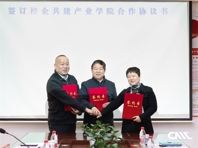劉瑩、張林峰分別致辭。他們表示,共建智能制造產(chǎn)業(yè)學(xué)院是創(chuàng)新驅(qū)動發(fā)展的核心動力,國機集團、融教聚聯(lián)將與學(xué)校一起積極探索產(chǎn)教深度融合新路徑,充分發(fā)揮自身的優(yōu)勢資源,共建專業(yè)、課程和教學(xué)質(zhì)量標(biāo)準(zhǔn),共同合作研發(fā)教學(xué)資源,培養(yǎng)創(chuàng)新型、復(fù)合型高素質(zhì)技術(shù)技能人才,共同譜寫振興地方經(jīng)濟社會高質(zhì)量發(fā)展的新篇章。