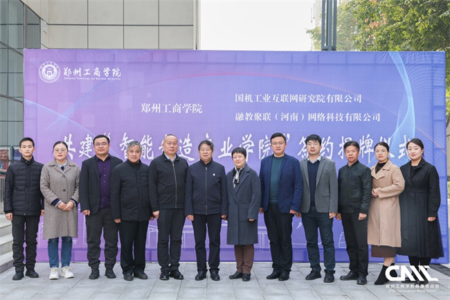 中新河南網(wǎng)11月20日電(程琳 雷向媛)11月15日,鄭州工商學(xué)院與國機工業(yè)互聯(lián)網(wǎng)研究院有限公司和融教聚聯(lián)(河南)網(wǎng)絡(luò)科技有限公司共建智能制造產(chǎn)業(yè)學(xué)院簽約暨揭牌儀式在實訓(xùn)大樓216會議室舉行。國機工業(yè)互聯(lián)網(wǎng)研究院有限公司副總經(jīng)理劉瑩、戰(zhàn)略市場部部長馬盈政、高級解決方案經(jīng)理喬輝,融教聚聯(lián)(河南)網(wǎng)絡(luò)科技有限公司總經(jīng)理張林峰、副總經(jīng)理朱俊鋒、項目規(guī)劃顧問杜林松,鄭州工商學(xué)院校長郭德欣、教務(wù)處處長秦方奇出席儀式,工學(xué)院院長隋繼學(xué)、黨總支副書記張理達(dá)、副院長張瑞君及相關(guān)專業(yè)教師代表參加儀式。儀式由副校長褚顏魁主持。