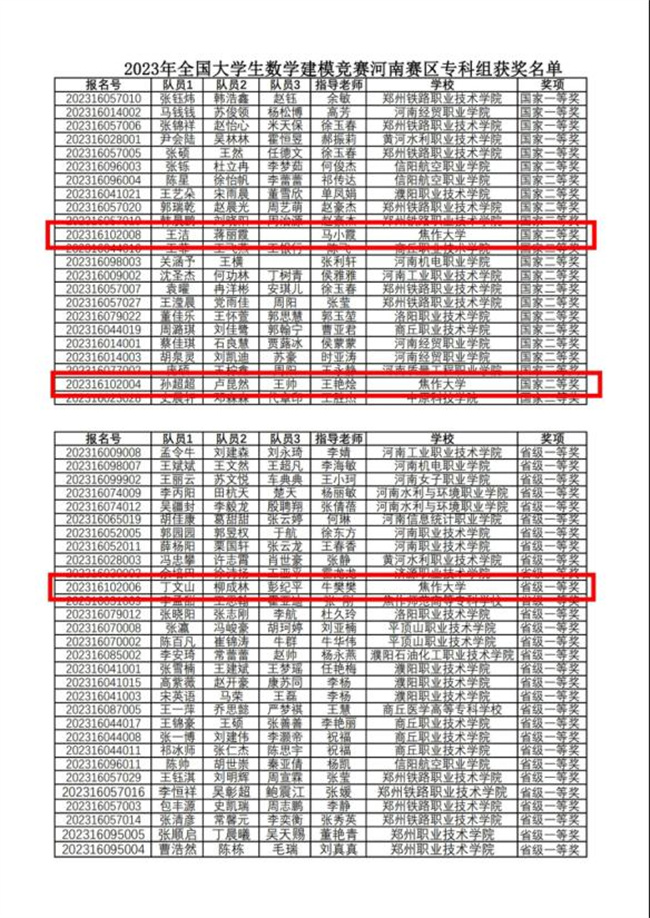 焦作大學(xué)在2023年“高教社杯”全國大學(xué)生數(shù)學(xué)建模競賽中再創(chuàng)佳績