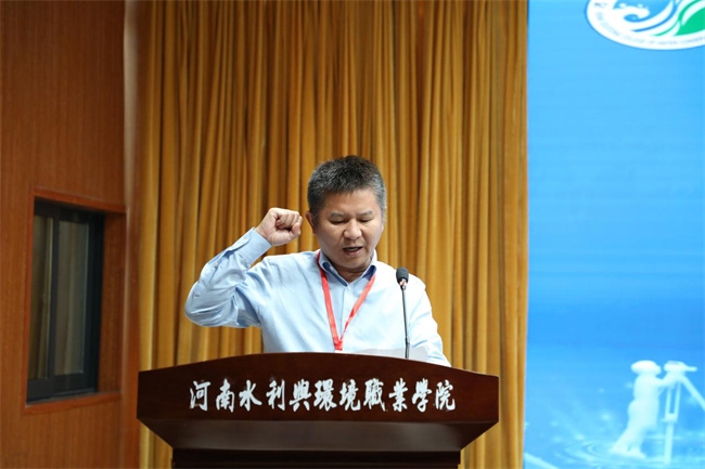 河南水利與環(huán)境職業(yè)學(xué)院土木工程系學(xué)生穆俊龍作為參賽選手代表宣誓