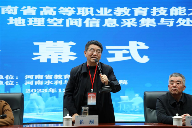 中新河南網(wǎng)12月2日電 大賽點(diǎn)亮人生,技能成就夢(mèng)想。12月1日,2023年河南省高等職業(yè)教育技能大賽“南方測(cè)繪杯”地理空間信息采集與處理賽項(xiàng)在河南水利與環(huán)境職業(yè)學(xué)院航空港校區(qū)正式開(kāi)幕。來(lái)自全省35所職業(yè)院校的66支代表隊(duì)、264名選手參加。校長(zhǎng)李志萍、校紀(jì)委書(shū)記張志淮、賽項(xiàng)督導(dǎo)河南省商務(wù)中等職業(yè)學(xué)校高級(jí)講師張?jiān)、總裁判長(zhǎng)解放軍戰(zhàn)略支援部隊(duì)信息工程大學(xué)教授翟翊、廣州南方測(cè)繪科技股份有限公司鄭州分公司總經(jīng)理王小剛出席開(kāi)幕式。全體裁判員、參賽學(xué)校領(lǐng)隊(duì)、參賽選手和指導(dǎo)教師及學(xué)校有關(guān)部門(mén)負(fù)責(zé)同志參加儀式。開(kāi)幕式由學(xué)校黨政辦公室主任張志遠(yuǎn)主持。