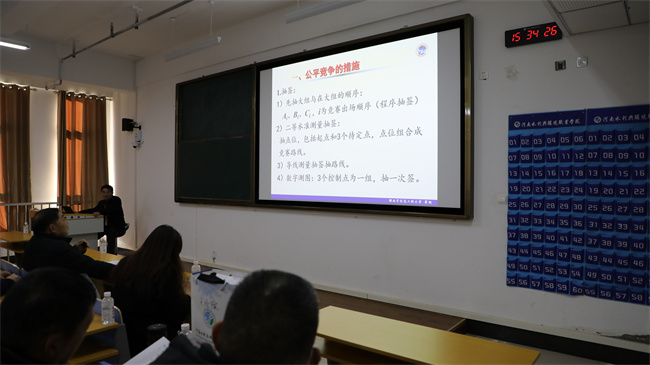賽項(xiàng)說(shuō)明會(huì)上,翟翊和分項(xiàng)裁判長(zhǎng)解放軍信息工程大學(xué)西勤教授分別對(duì)一級(jí)導(dǎo)線測(cè)量、二等水準(zhǔn)測(cè)量和1:500數(shù)字測(cè)圖競(jìng)賽細(xì)則進(jìn)行解讀,明確細(xì)則要求、注意事項(xiàng)等內(nèi)容。各參賽隊(duì)進(jìn)行了分組抽簽。